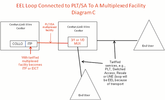 - A point-to-point commingled EEL is a UNE circuit connected to a Private Line circuit of the same bandwidth; and either the loop or the transport is ordered from either the Private Line Transport (PLT) or Special Access (SA) tariff. The connection between the tariffed service and the UNE service is made via a central office connecting channel (COCC). The COCC is ordered and billed with the tariffed service. A commingled EEL can also be an EEL Loop connected to a PLT/SA tariff multiplexed transport facility between CenturyLink wire centers. See Enhanced Extended Loop (EEL)